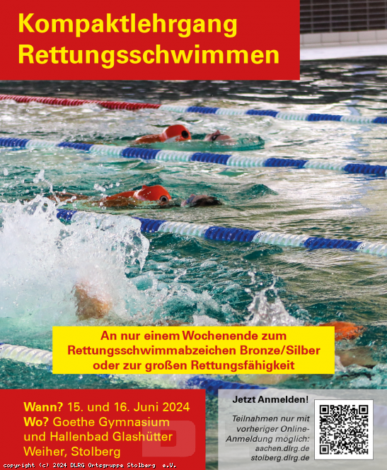 DLRG OG Stolberg e.V. veröffentlicht Kursangebote für Rettungsschwimmkurse 2025 – Anmeldung ab sofort möglich Stolberg. Die DLRG OG Stolberg e.V. freut sich das Kursangebot für Rettungsschwimmkurse (Bronze und Silber) sowie für die Rettungsfähigkeit für das Jahr 2025 bekanntzugeben. Ab sofort haben Interessierte die Möglichkeit, sich für die verschiedenen Kurse anzumelden und einen wichtigen Beitrag zur Sicherheit in und am Wasser zu leisten. Die Rettungsschwimmkurse der DLRG OG Stolberg e.V. richten sich an alle, die ihre Fähigkeiten im der Wasserrettung erweitern möchten. Teilnehmende Personen haben die Möglichkeit das Deutsches Rettungsschwimmabzeichen Bronze oder Silber abzulegen. Zudem haben Lehrkräfte in NRW die Möglichkeit, ihre Rettungsfähigkeit zu erhalten oder alle vier Jah ... Mehr erfahren